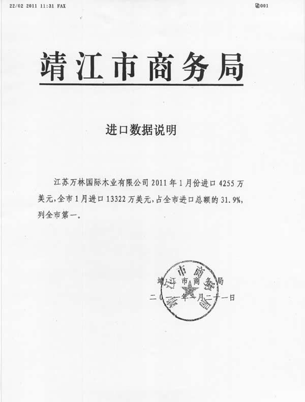2011年1月进口总额列全市第一
